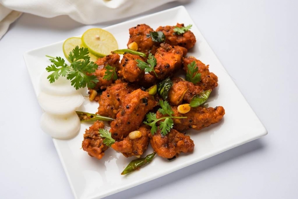 Ingredientsraw chicken breast tikka marinated with ginger garlic paste curd garam masala chilli paste Coriander powder Etc.
